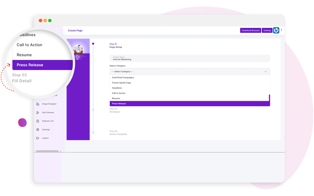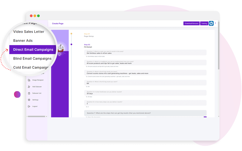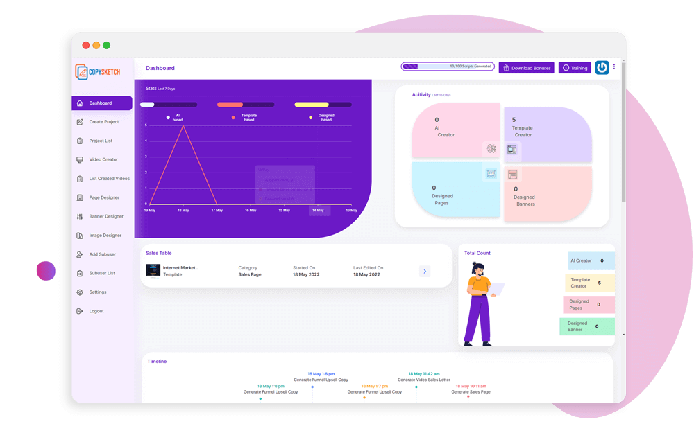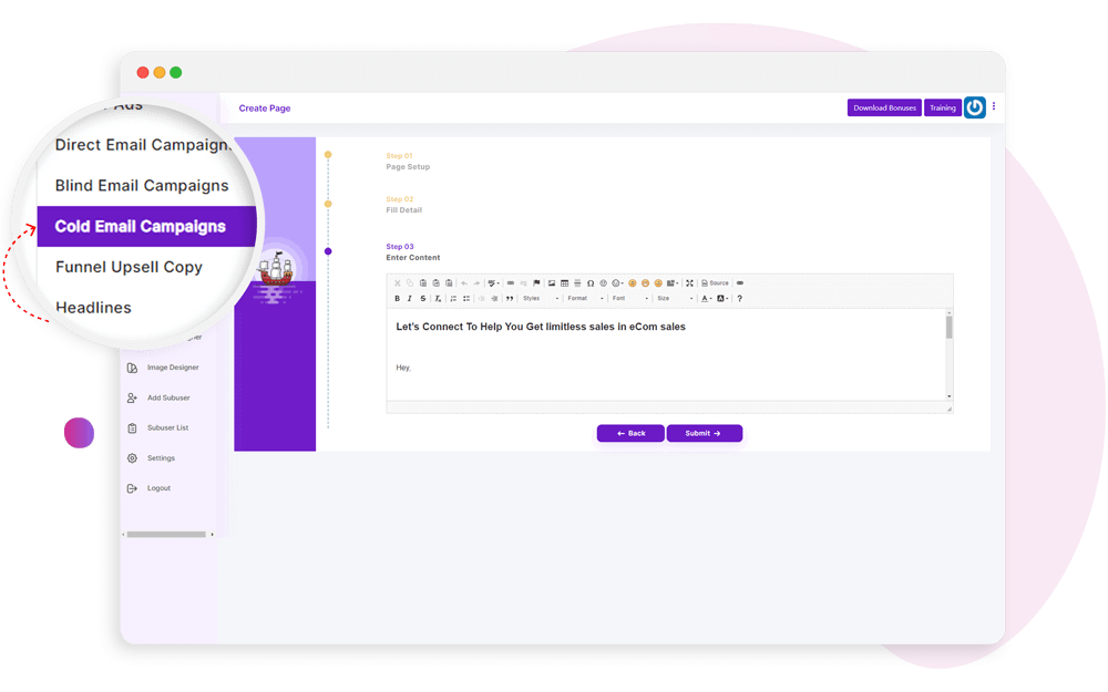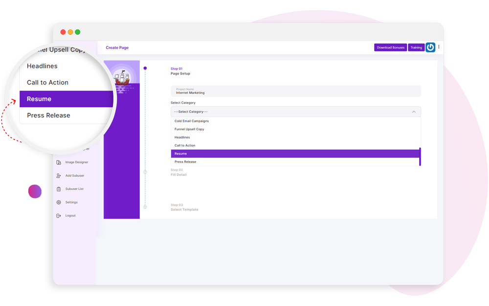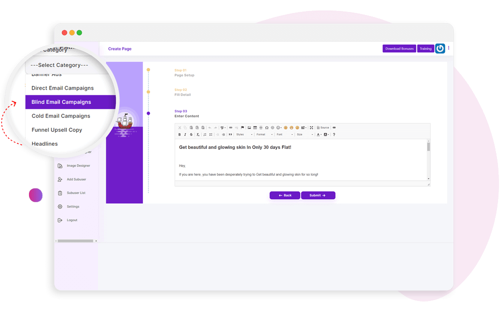 Create high-converting and attention-grabbing marketing content and copies like sales pages, email swipes, video scripts, ads, squeeze pages, and more.